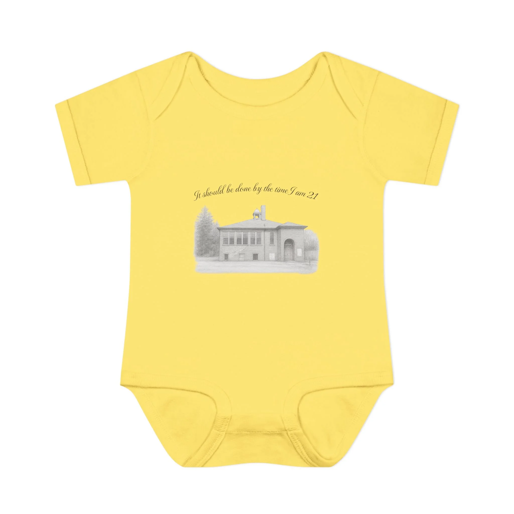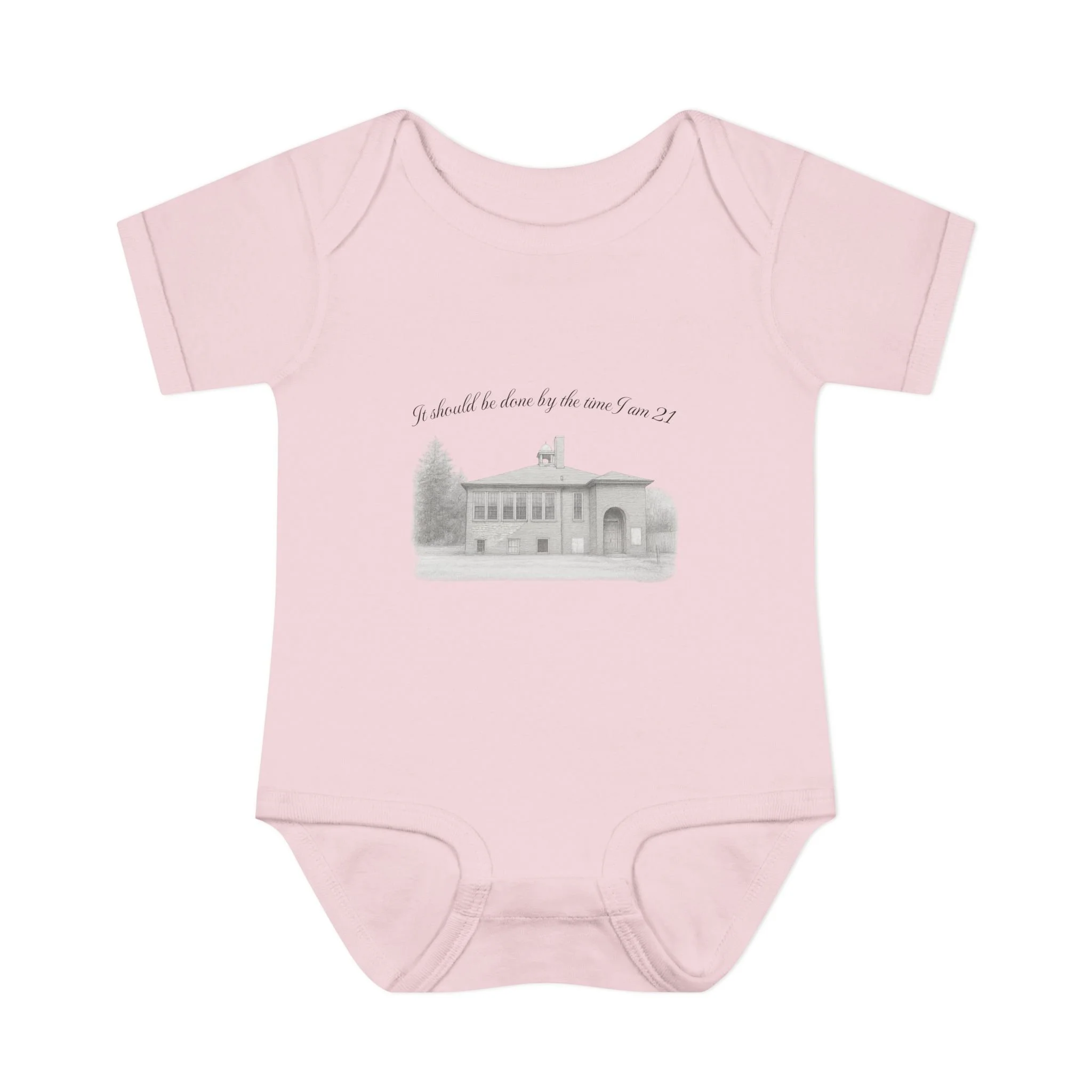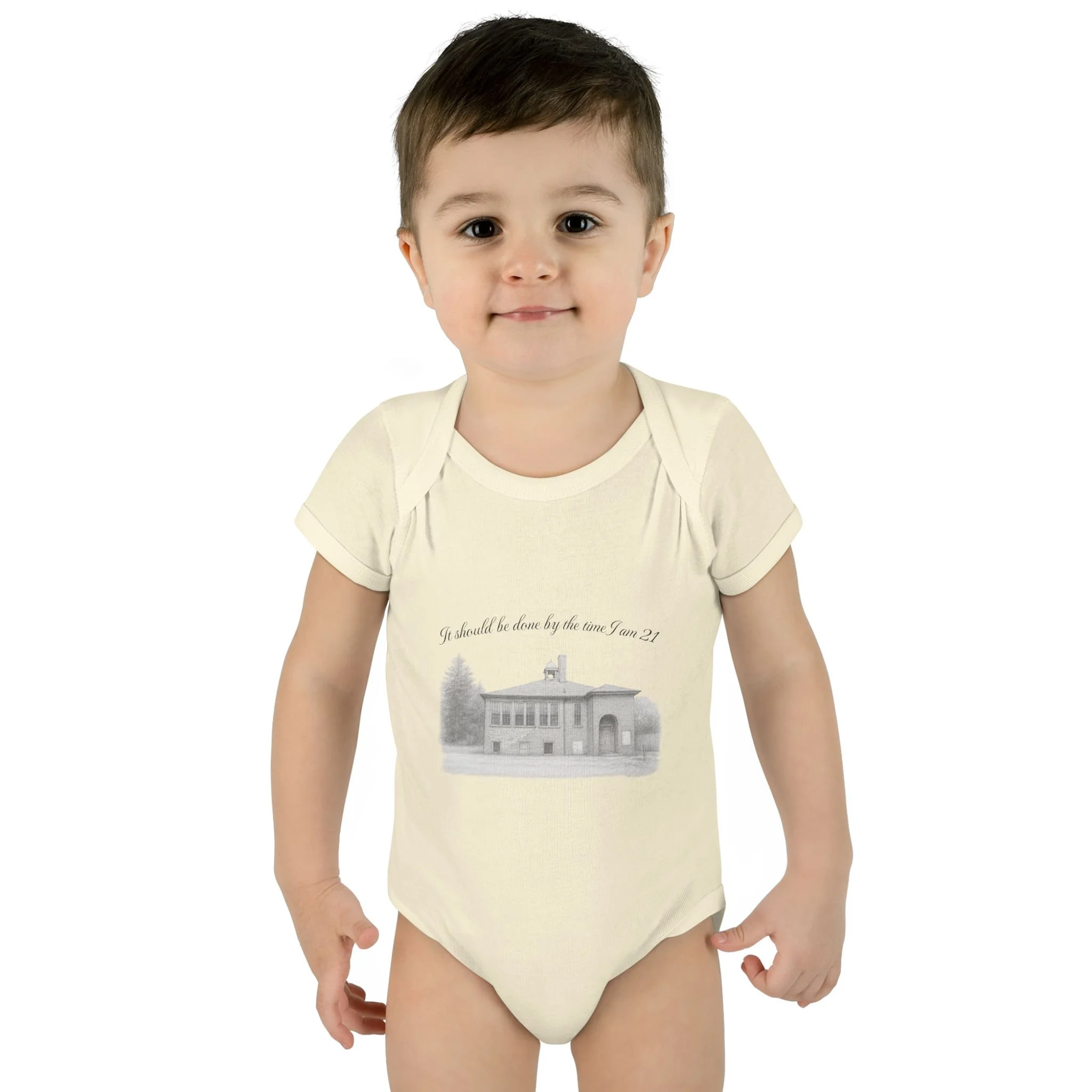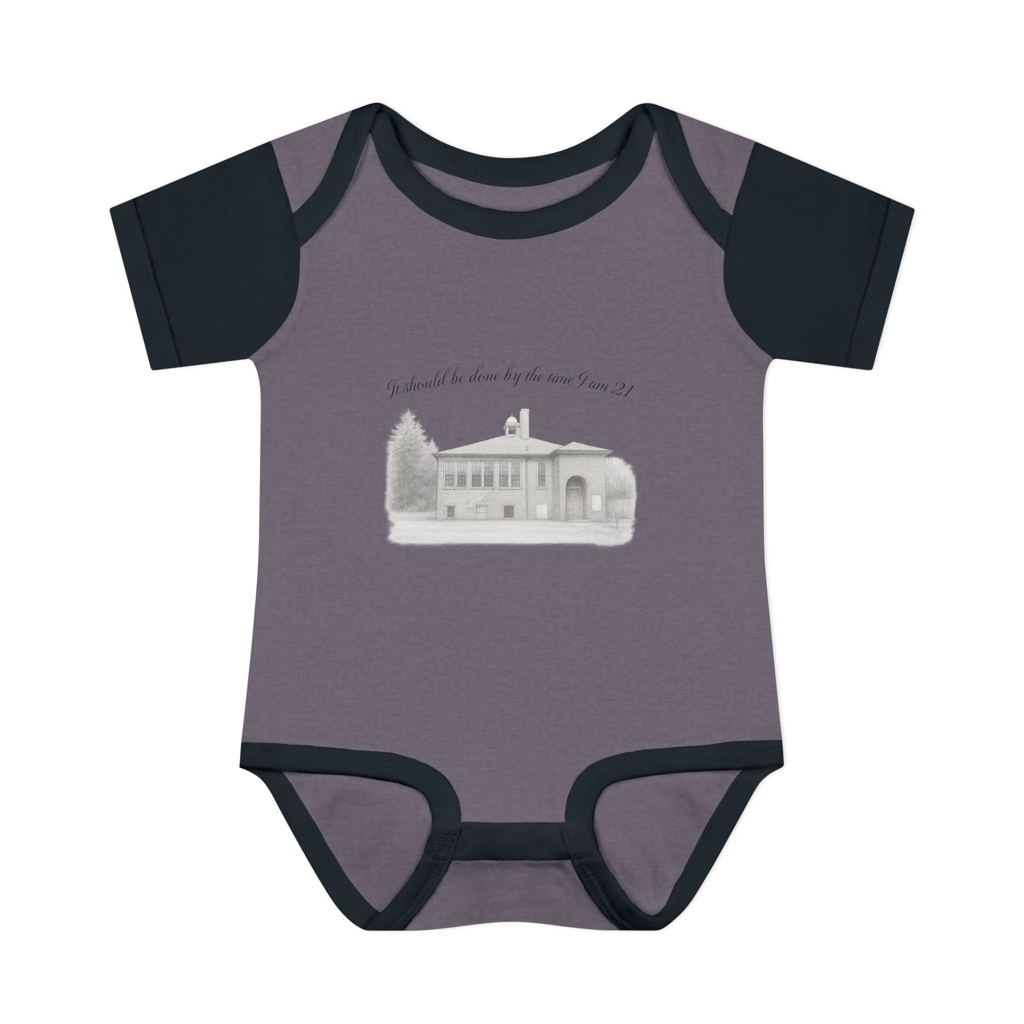 A soft, lightweight infant bodysuit featuring a pencil sketch of the former Fremont School and a gentle handwritten phrase above it. The subtle grayscale print sits on breathable combed ringspun cotton that keeps baby comfortable through naps and play. Thoughtfully designed with lap shoulders and a three-snap closure, dressing and diaper changes are quick and fuss-free. The ribbed edges and reinforced seams keep the silhouette neat wash after wash, while the tear-away label and smooth DTF neck print ensure no scratchy tags against tender skin. This piece layers easily under sweaters or pairs with tiny leggings for a calm, cozy look that feels like home.