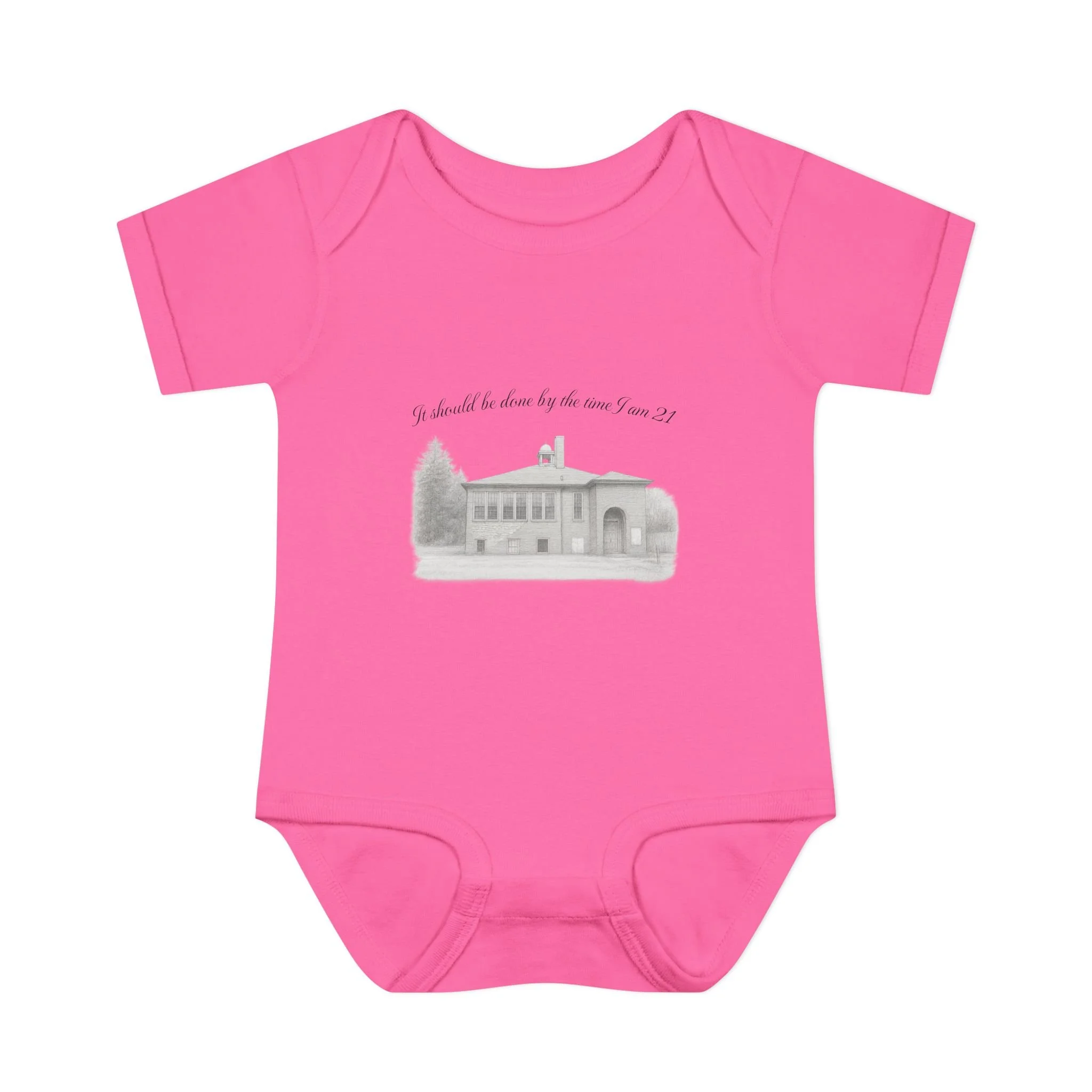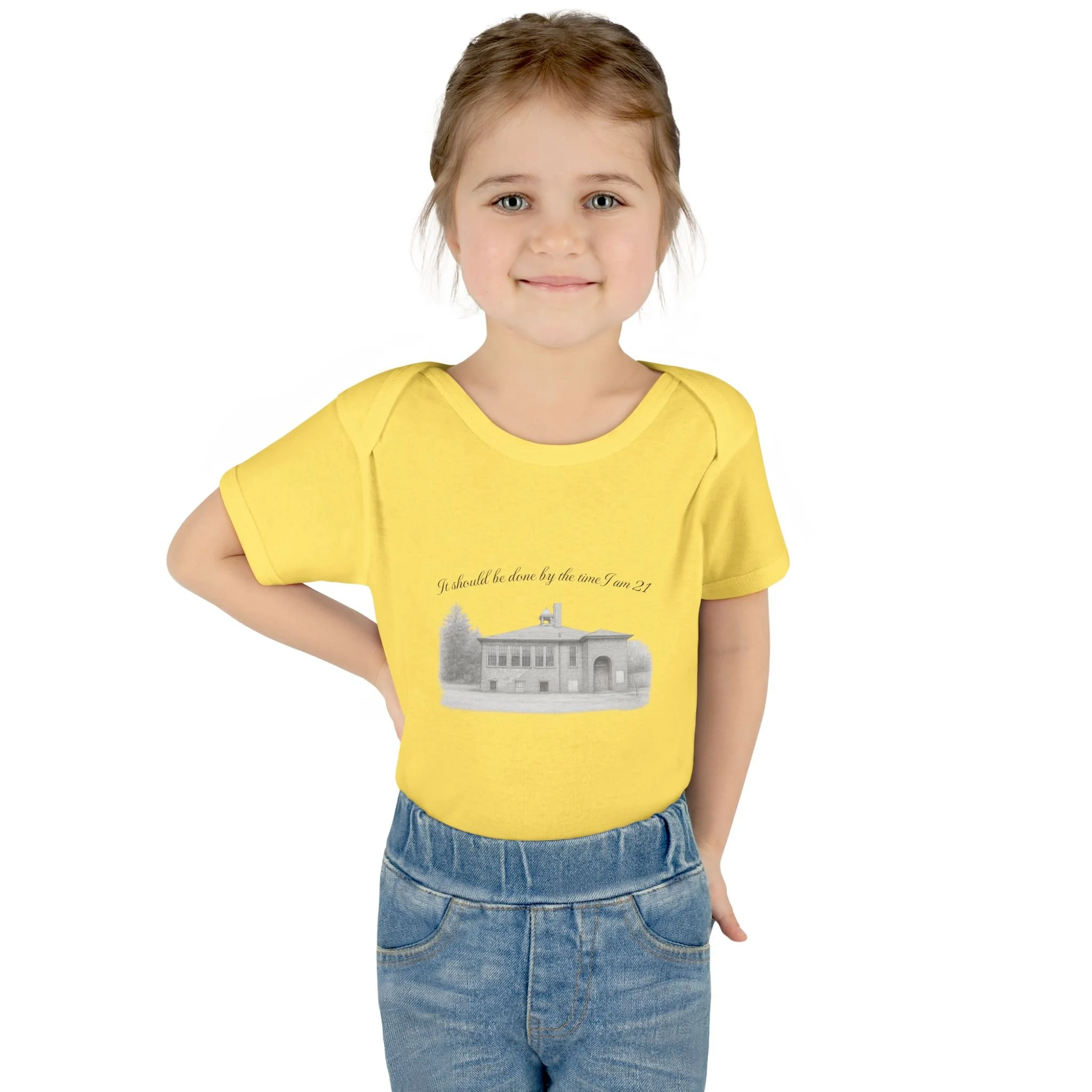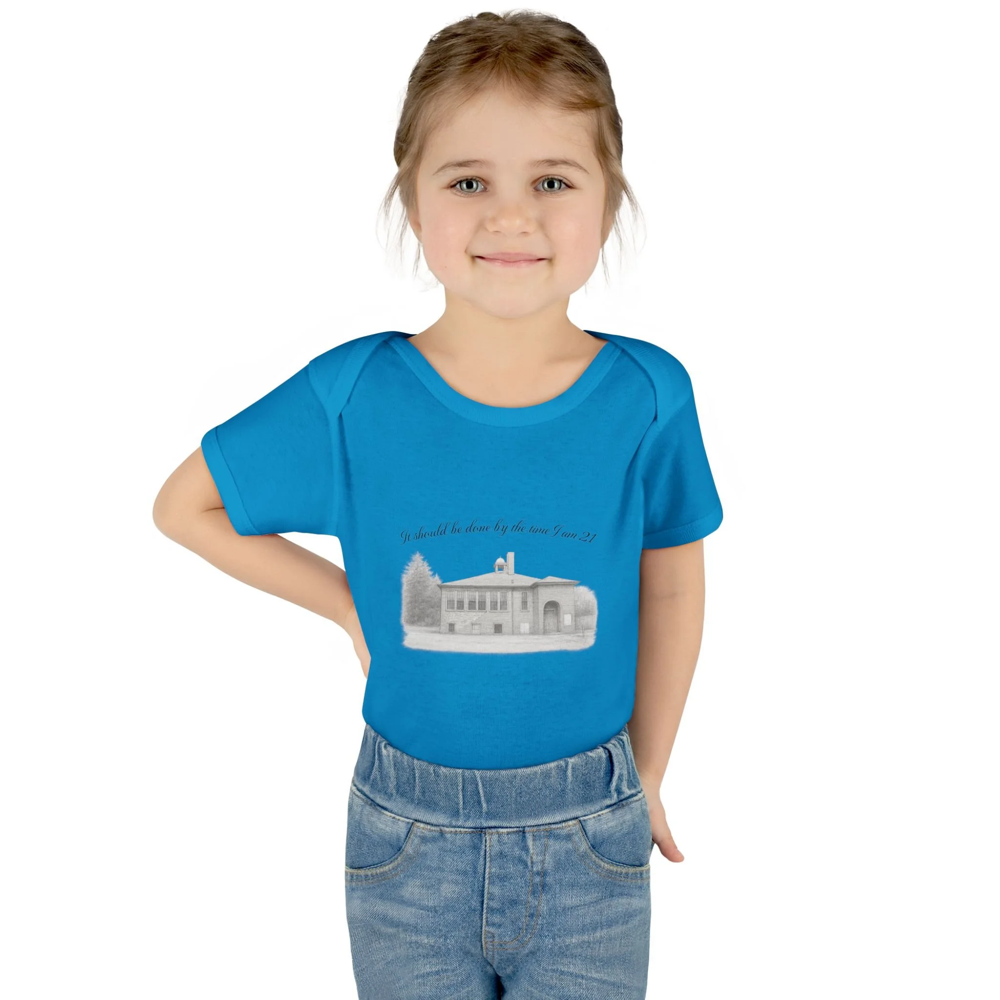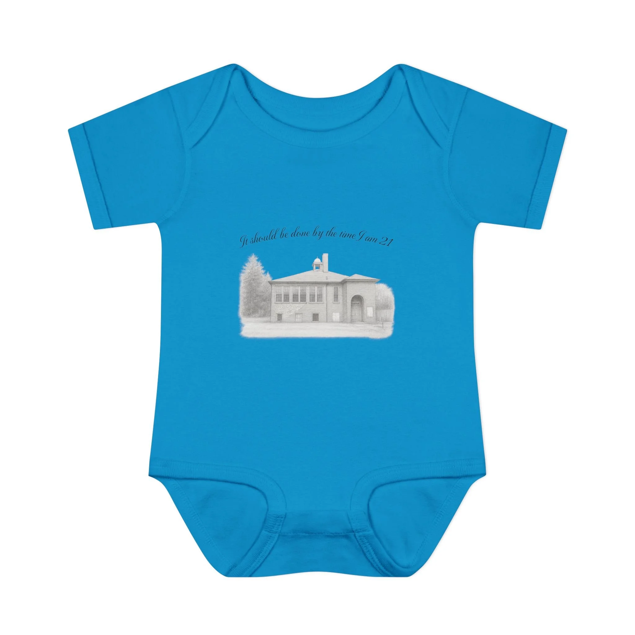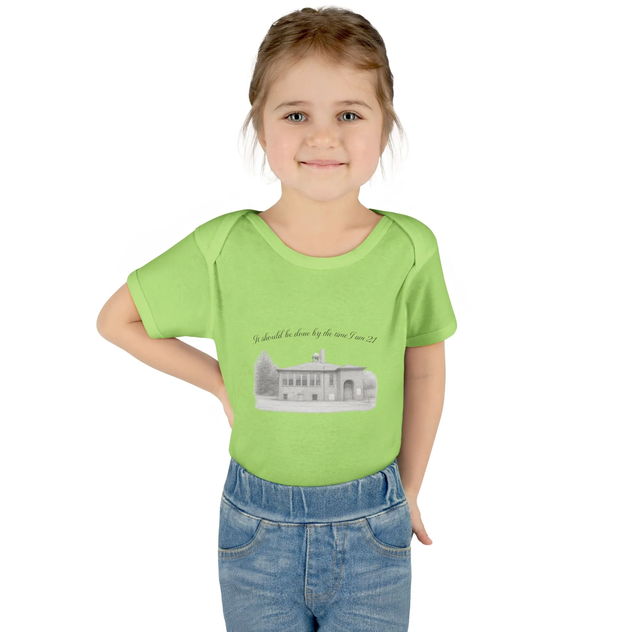 A soft, lightweight infant bodysuit featuring a pencil sketch of the former Fremont School and a gentle handwritten phrase above it. The subtle grayscale print sits on breathable combed ringspun cotton that keeps baby comfortable through naps and play. Thoughtfully designed with lap shoulders and a three-snap closure, dressing and diaper changes are quick and fuss-free. The ribbed edges and reinforced seams keep the silhouette neat wash after wash, while the tear-away label and smooth DTF neck print ensure no scratchy tags against tender skin. This piece layers easily under sweaters or pairs with tiny leggings for a calm, cozy look that feels like home.